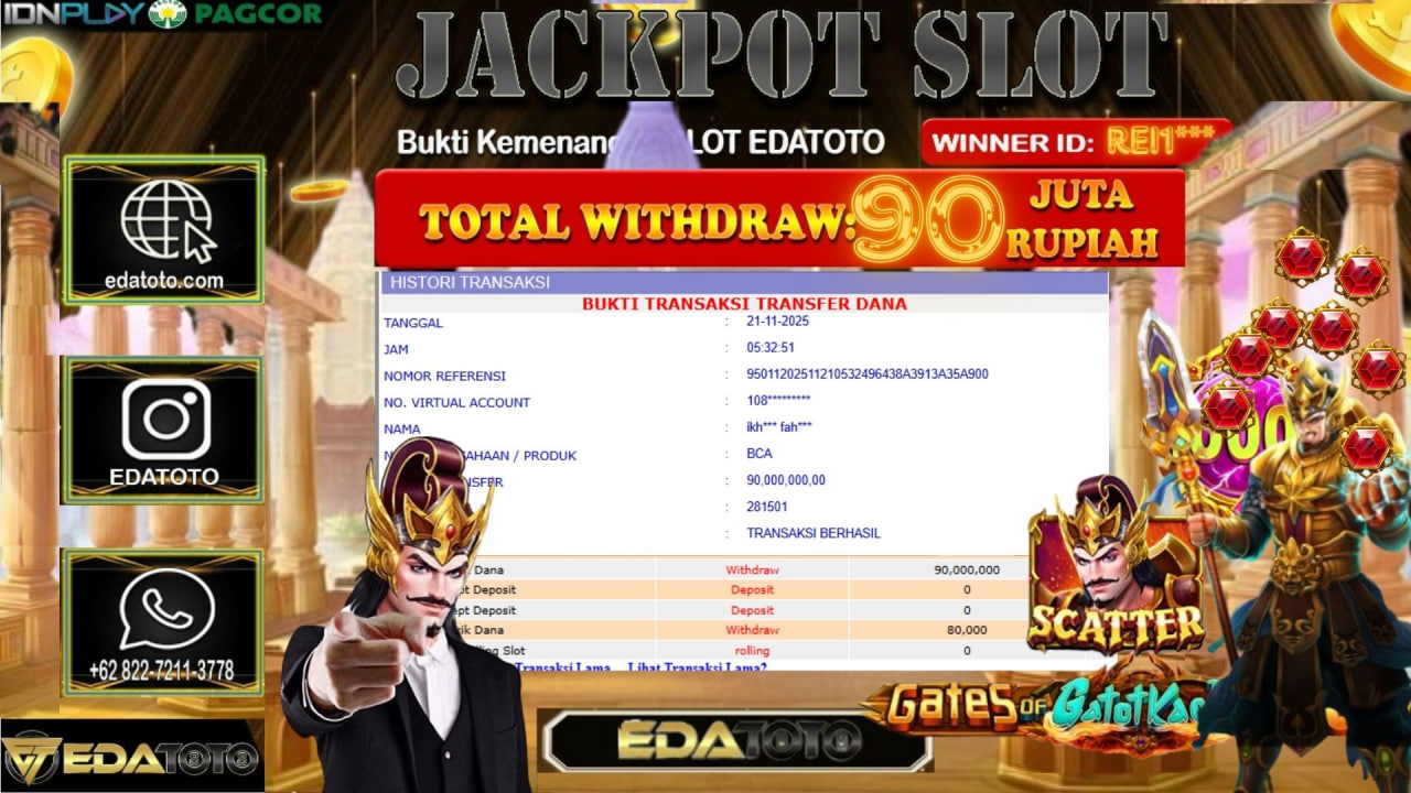 Selamat Kepada Pemilik user ID : REI1*** Hari/Tanggal :JUM’AT / 19, November 2025 Jackpot : Rp. 96,00,000 JT Withdraw :90,000,000 JT . . .