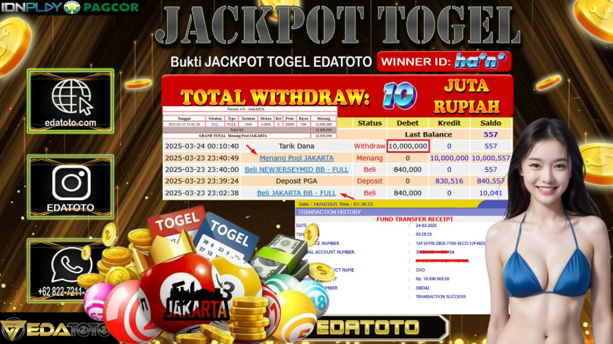 Selamat Kepada Pemilik user ID : xf****b1 Hari/Tanggal : Selasa / 11 , MARET 2025 Jackpot : Rp. 35.000.000 JT Permainan . . .