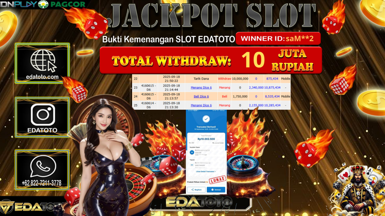 Selamat Kepada Pemilik user ID : saM**2 Hari/Tanggal : Senin/ 19, September 2025 Jackpot : Rp. 10.000.000 JT Permainan : . . .