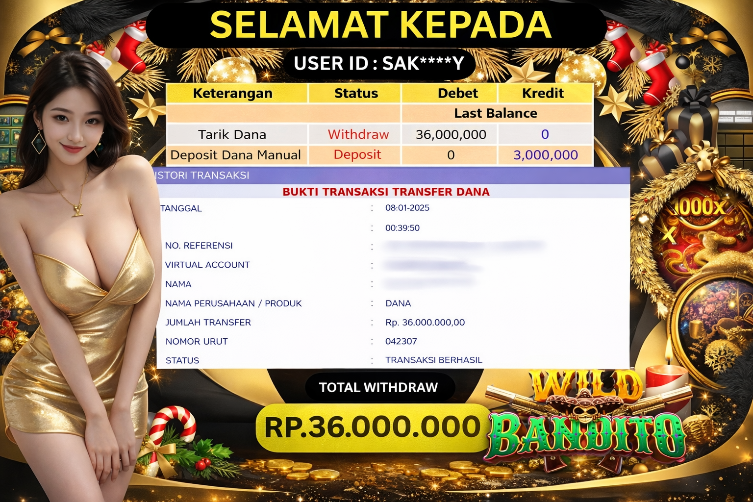 Selamat Kepada Pemilik user ID : SAK****Y Hari/Tanggal :kamis/ 8, Januari 2026 Jackpot : Rp. 36,000,000 JT Withdraw : 36,000,000 . . .