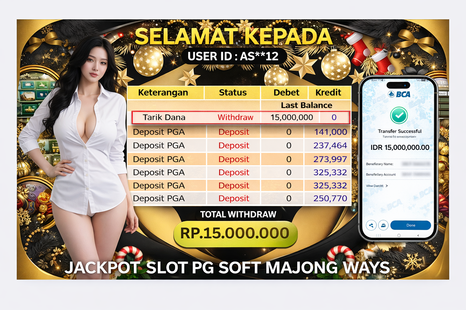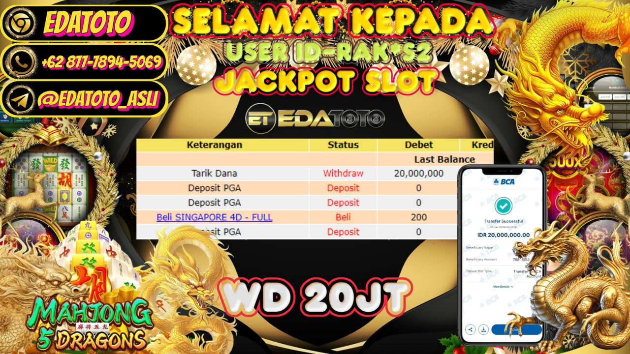 Selamat Kepada Pemilik user ID :RAKU*S2 Hari/Tanggal :kamis/ 31, Desember 2025 Jackpot : Rp. 20,000,000 JT Withdraw : 20,000,000 JT . . .